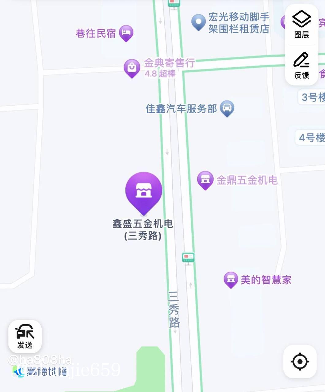 三秀路这里晚上有站街小妹妹,看地图导航到鑫盛五金机电,隔壁门...